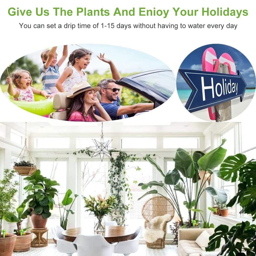 You can use the control system even when you are on vacation, just put the right bottle and regulate the flow, and you can leave your plants without worrying. It can release the right amount of water for up to fifteen days, and it is super easy to use.
